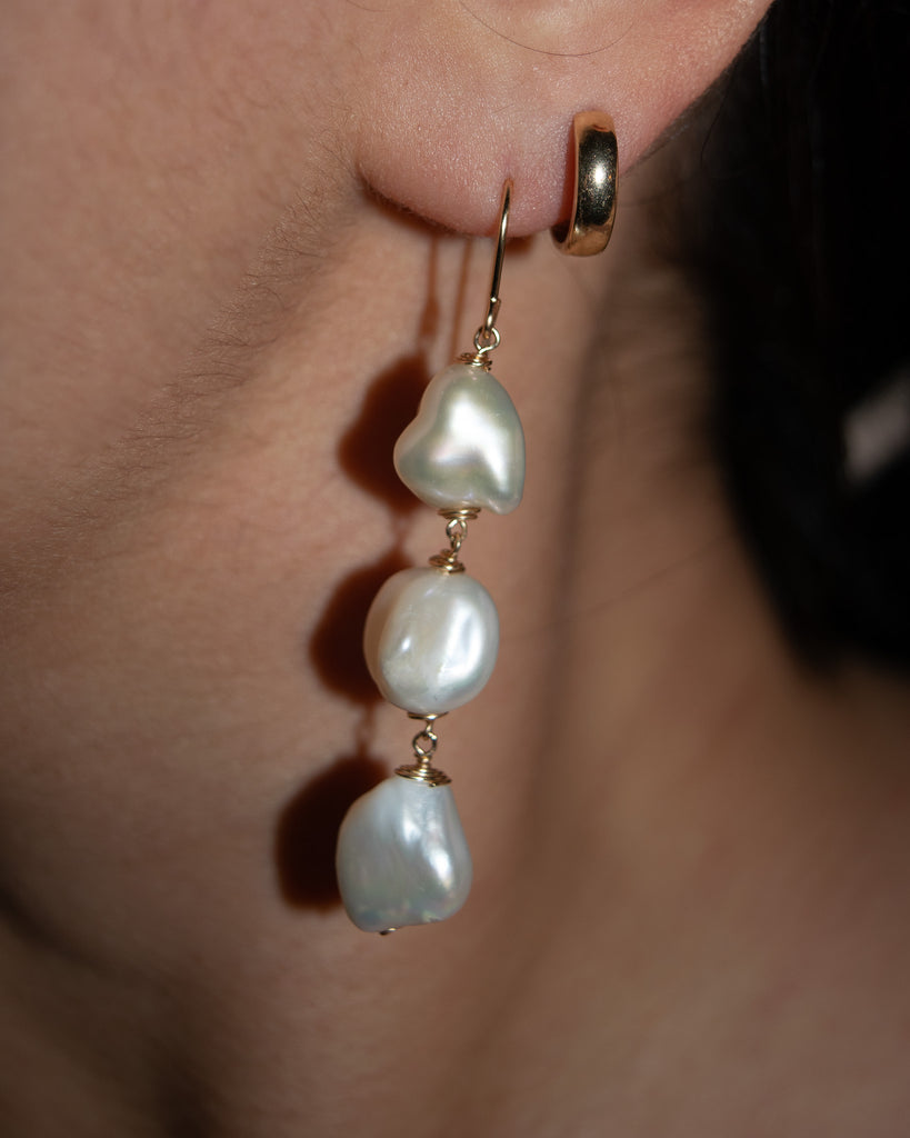 A dangly and elegant ensemble of three AAA rare Keshi pearls.